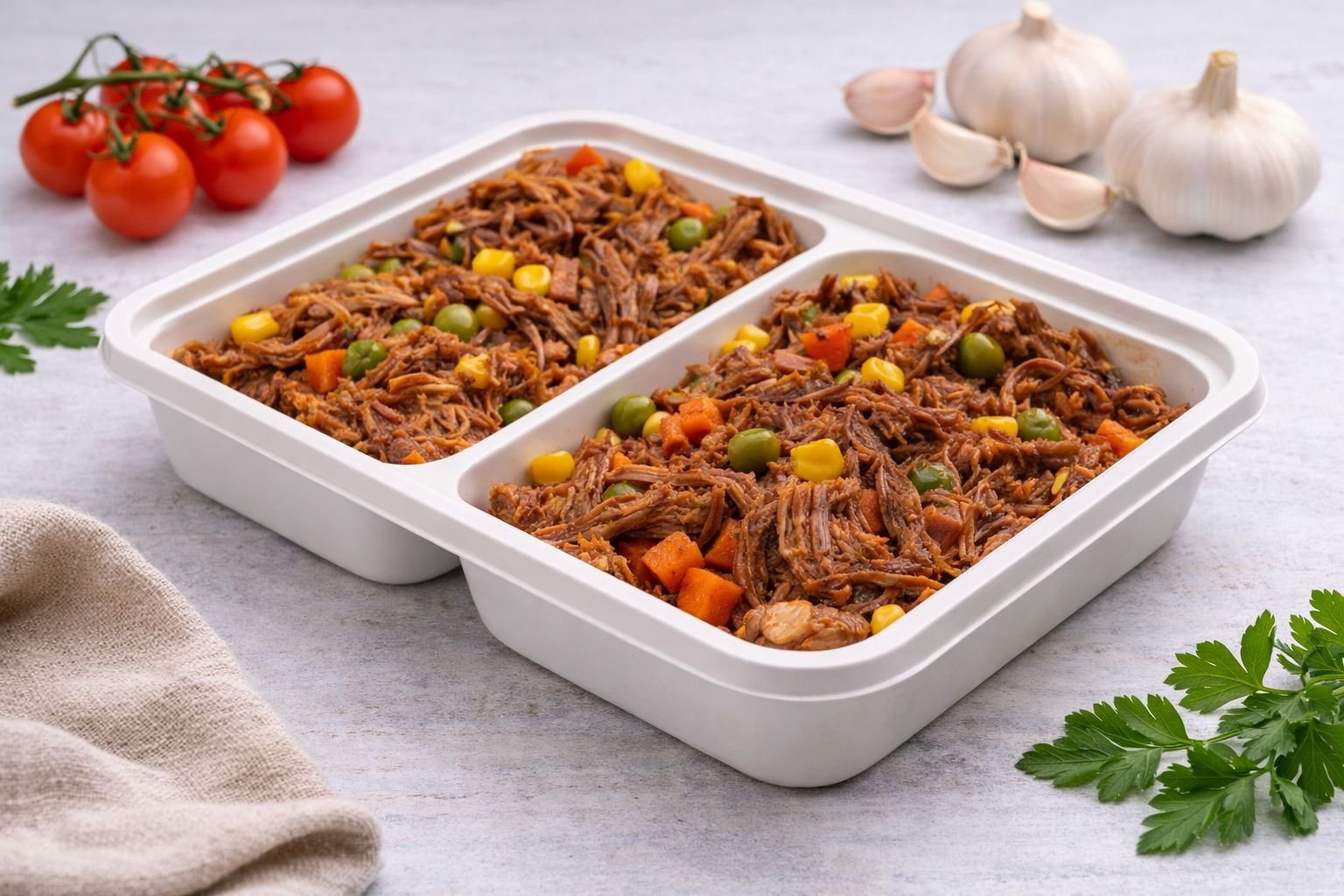 Carne cozida por horas até ficar extremamente macia e desfiada, refogada com temperos caseiros para ficar úmida e saborosa.